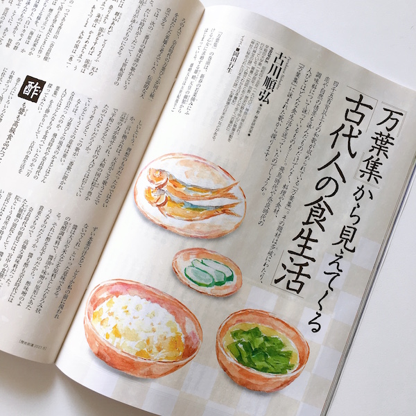 イラスト描きました! TurtleStudio 食べ物/料理 2021年4月12日手描き, 水彩 『歴史街道(PHP研究所)』に「古代食」のイラストを描かせていただきました。 水彩画です。 4月6日発売の2021年5月号です。 みなさまよろしかったらどうぞ。